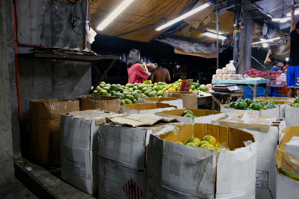 Have you been to Divisoria, maybe China Town in Manila? It's a town that resembles a mall where product and service sections are instead streets for eyeglasses, cameras, beading, nylon canopies (lona), electrical components, lighting, etc. Now picture the same setup, but all of it is absolutely public market produce: Veggies, Fruits, Grains, Poultry, Fish, Beef, Pork, and everything in between. You will find the typical fruit stand but also stores that stock and sell them by the crate, sack, and "kaing" (large open bamboo basket).