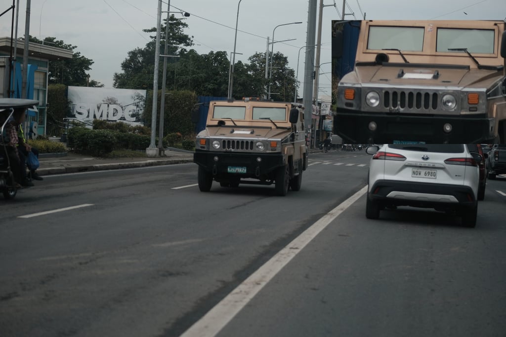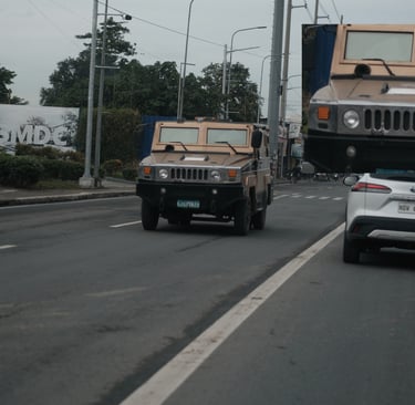 Least Focused & most blurry shot of vehicles. (See armored van)