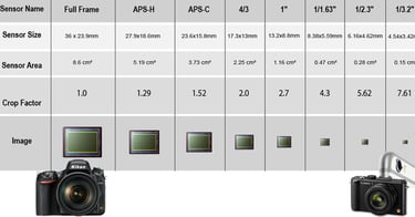 Image Sensors are what used to be film in analog cameras, are responsible for capturing light that enters the lens. Bigger is typically more expensive and better being more sensitive to light and better at capturing detail.
