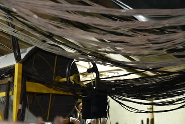 A Barangay San Jose giant parol maker wiring one of many cylindrical controllers of the lantern.