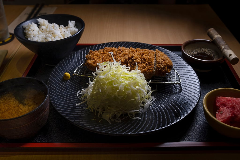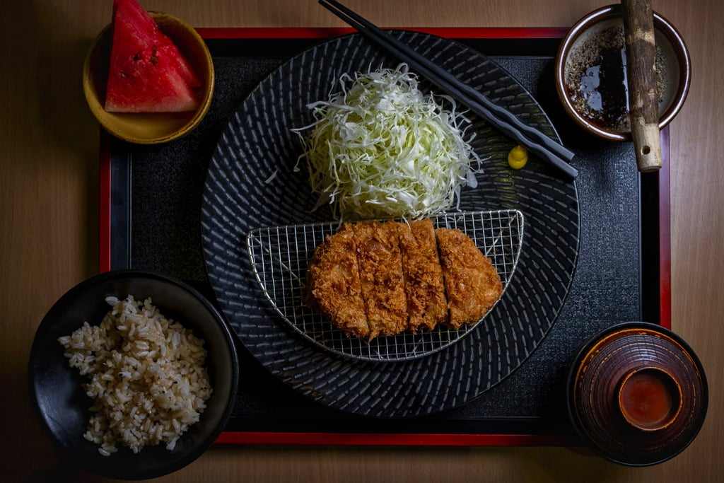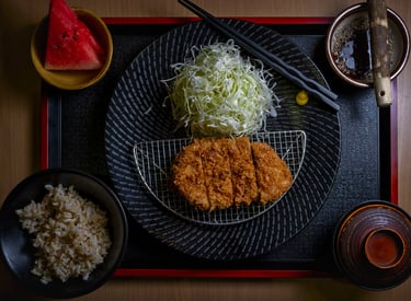 "Tonkatsu" is a Japanese dish made from a thick cut of pork loin or fillet, breaded with panko and deep-fried until golden and crispy. It’s sliced into easier to eat bite-sized strips.